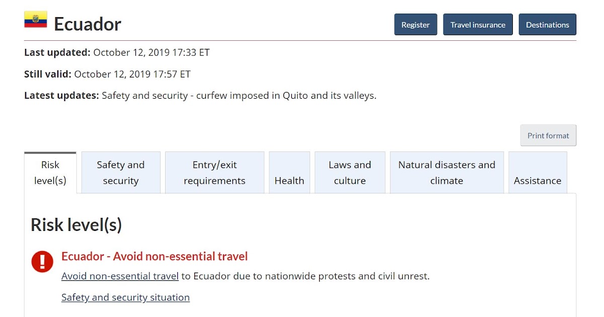 Exercise increased caution in ecuador due to crime. Ecuador level 3 reconsider travel 7 august 2020 message for us. Httpsecusembassygovtravel advisory for ecuador on april 9 2019 the full text of the new travel advisory follows. Do not travel to.
